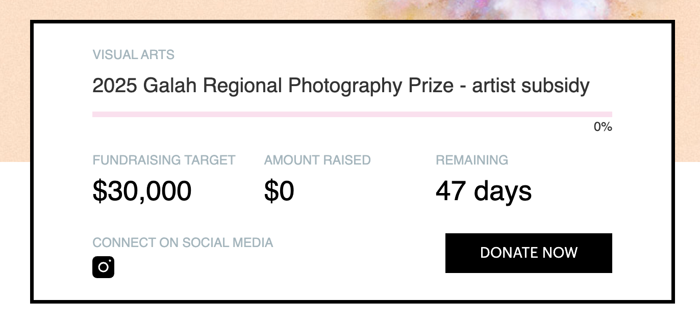 Help us create an "artist subsidy" fund to support the finalists in the 2025 Galah Regional Photography Prize.