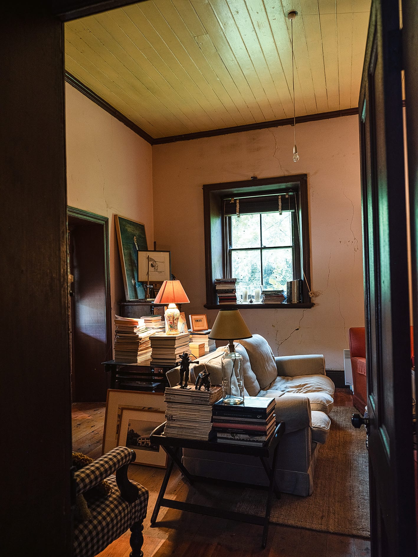 When they renovate, he says, that wall will stay, complete with well-aged stains. New additions will include a kitchen wing and an old-fashioned sleep-out, open to the elements, for Reid and Dawes’s summer bedroom. There will also finally be an
