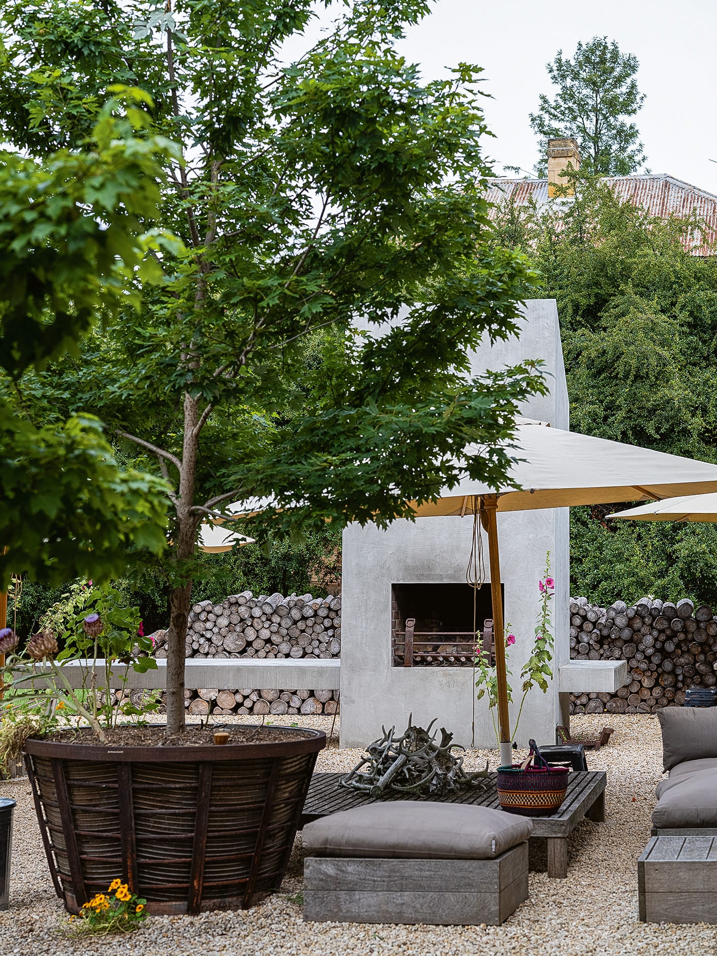 Broadbent’s advice was to avoid “tizzying” up the place. Reid describes the results as “rural Bauhaus”, with one of his favourite features being the sculptural cantilevered outdoor fireplace. He designed it himself, with help from architect William Zuccon, who also did the tin shed gallery and house reno plans. Lots of visiting architects have taken photos of the fireplace. “So I’m expecting it to pop up in luxury homes all over the beaches of Australia.”