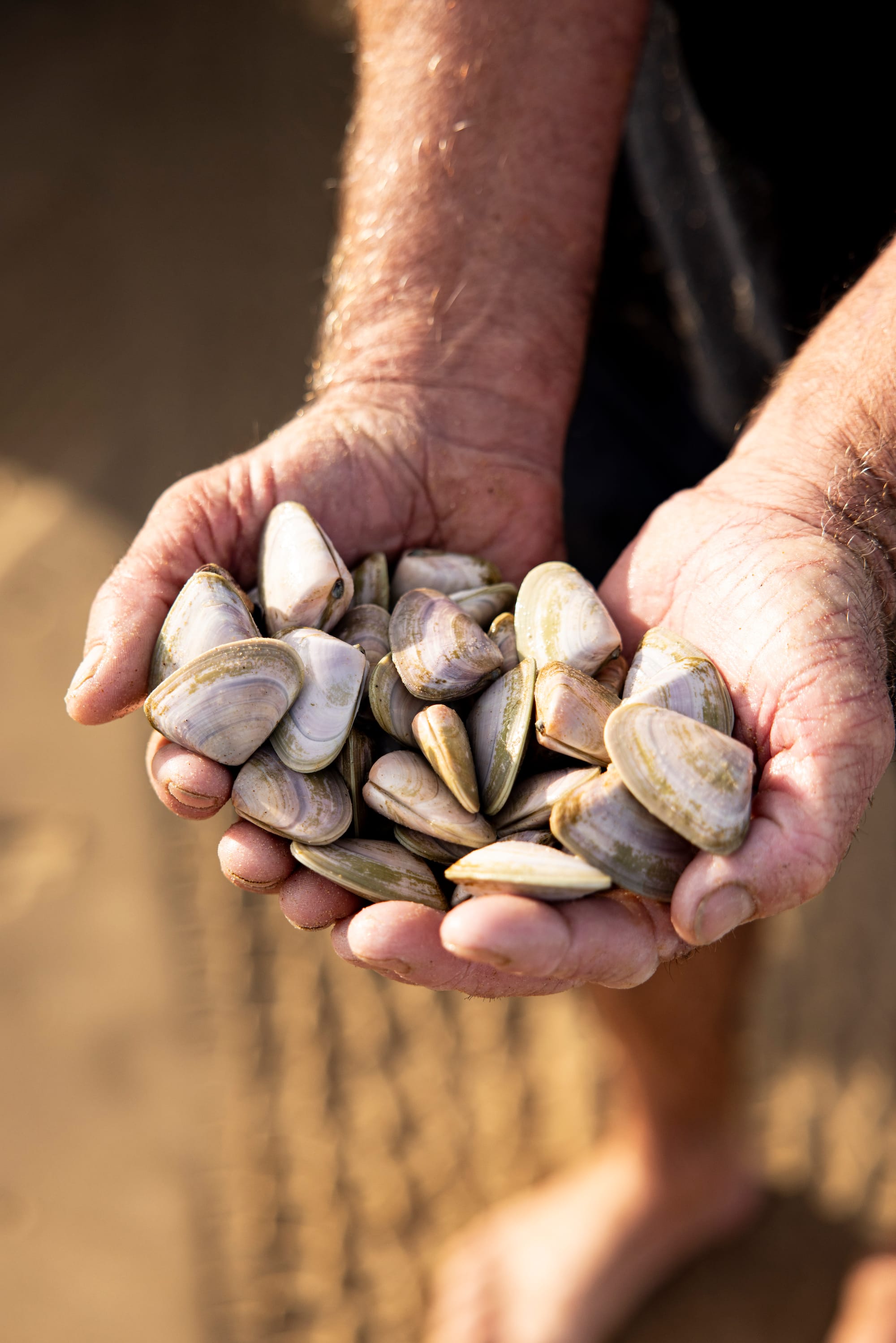 Hoad’s feet are the tools of his trade. His soles are thickened, his heels are hard as iron and you’d swear his ankles are muscled—perfectly formed for digging out the Goolwa pipi, also known as a cockle or, in the language of the Ngarrindjeri, a kuti. Scientifically speaking it’s Donax deltoides, the edible saltwater clam that’s endemic to Australia and increasingly prized by Australian chefs.