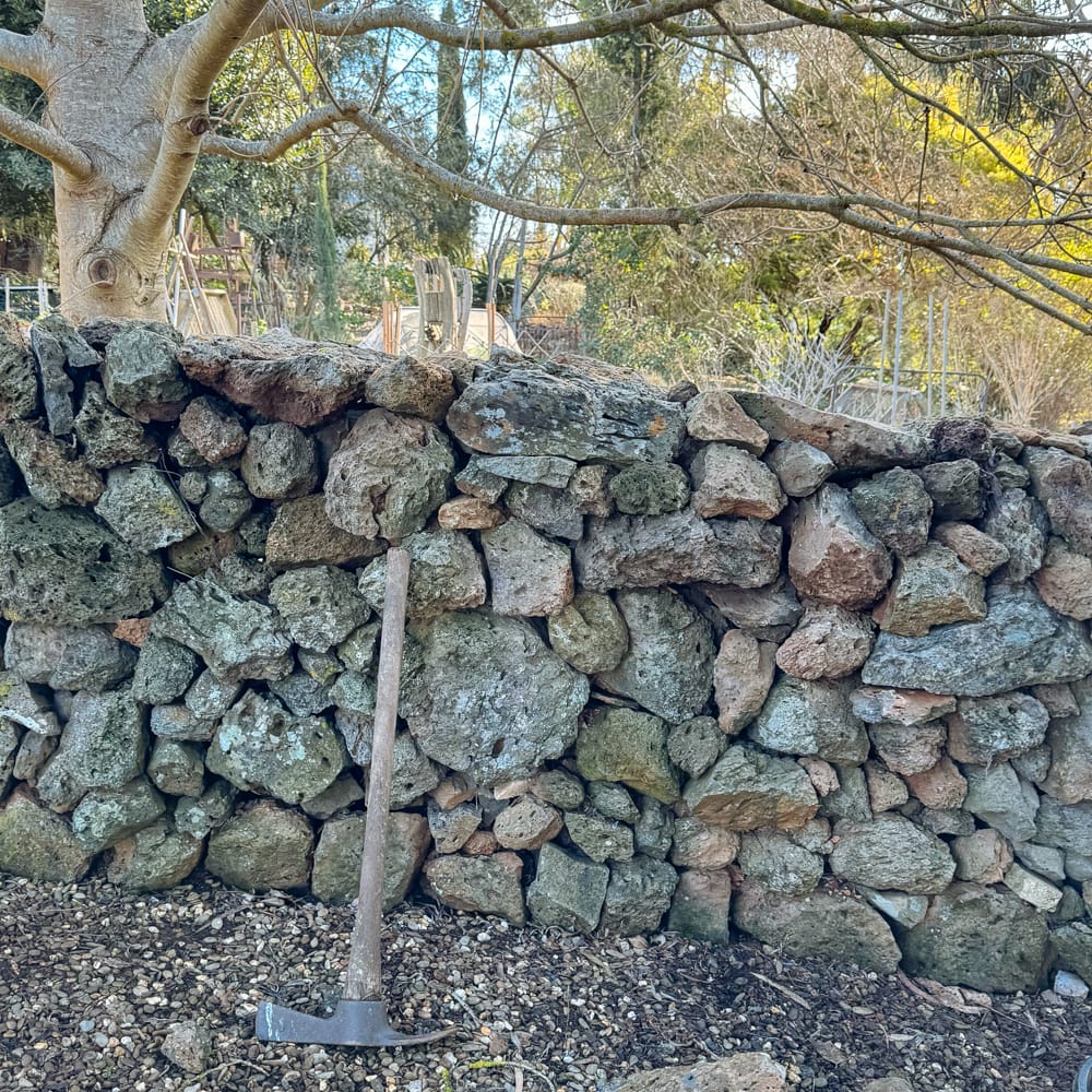 We simply can't have the mockery of garden walls more clever than the house. So we are lucky that in order to keep things true to the spirit of place, we don't need to shoulder the financial cost of getting in the "professionals" – and the rocks, of course, are free. It's a win-win.