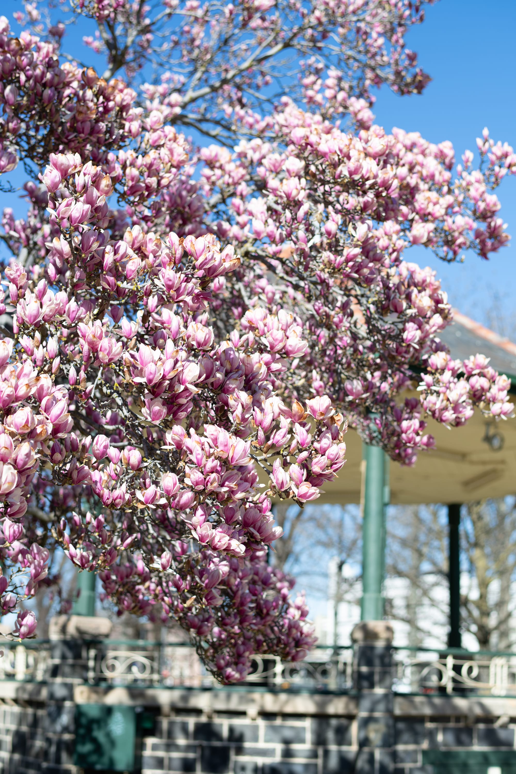 Clockwise from top left: Magnolias in bloom at Cook Park, Sarah Barrett, the conservatory at Cook Park, gelato at Spilt Milk, at the bar at Hey Rosey and a shelf of fresh pastries at Racine Bakery. Photography by Pip Farquharson.