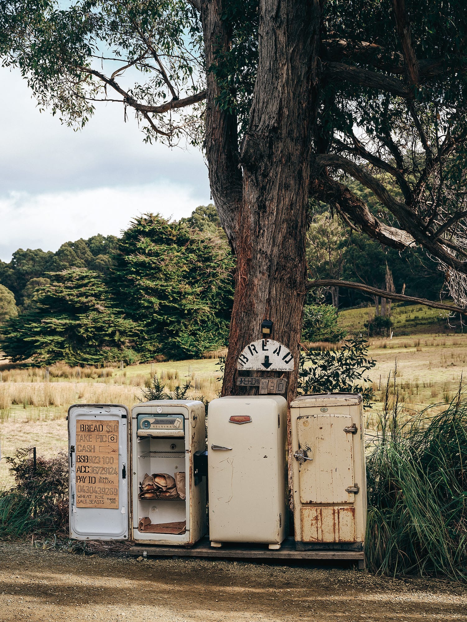 Arriving at dawn at Devonport in Tasmania’s north, they drive three hours south to Hobart. After stocking up on provisions, they head another half-hour’s drive south to Kettering and catch a small car ferry across the D’Entrecasteaux Channel, a 20-minute ride on which their excitement builds. The final leg is a 45-minute drive south through farm and bushland, an isthmus called The Neck and, at last, a meander down the coastline. There’s just one more stop – at a couple of vintage refrigerators filled with fresh sourdough loaves, set up as a roadside stall by the Bruny Baker. Sometimes Newman-Morris keeps butter at hand to slather on their favourite sultana loaf for the final stretch to Fairweather.