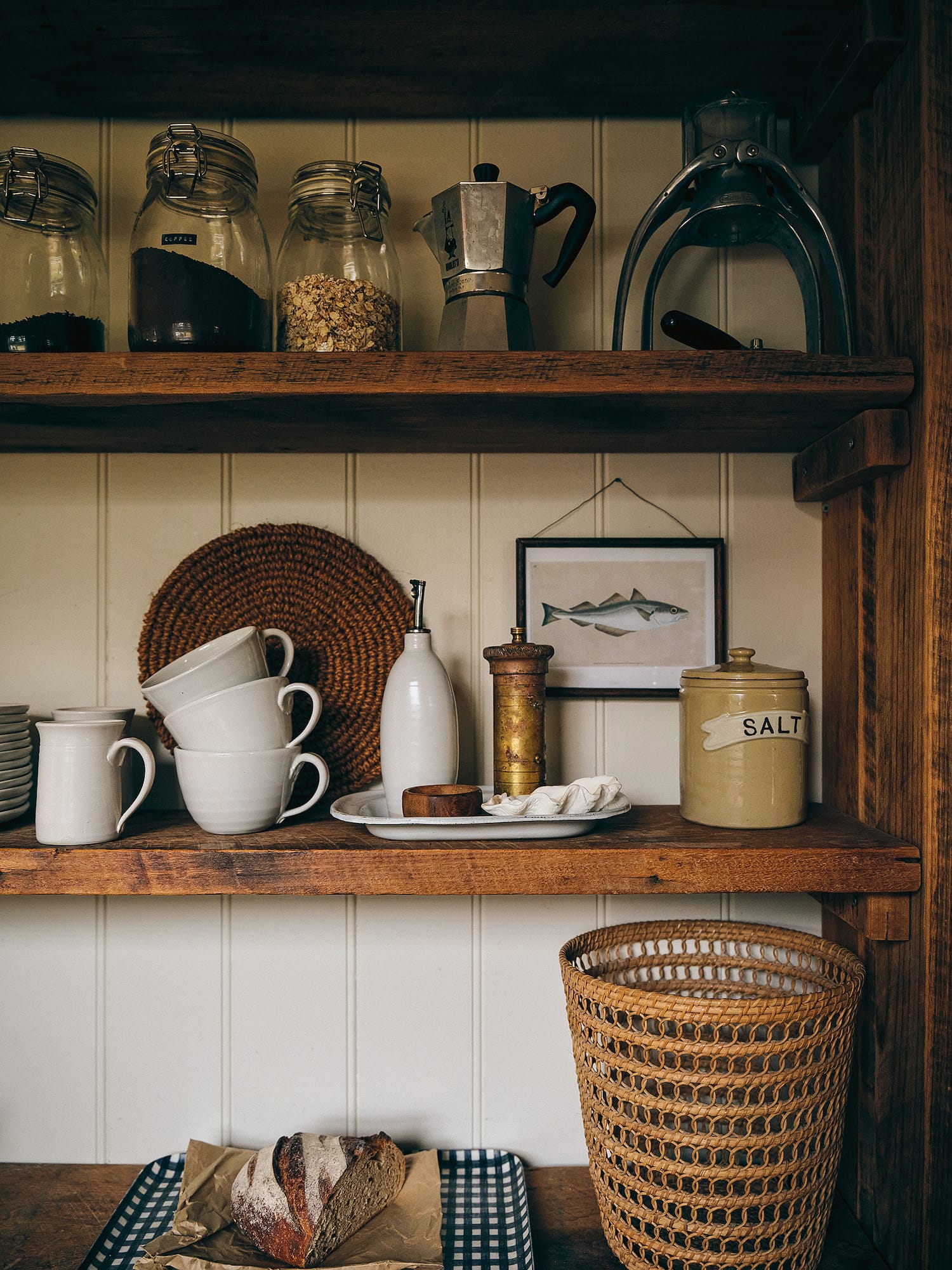 “I come here and I just want less. I edit every single time. The last thing to go from view were the collections of sea-glass Freddie finds for himself and the old china he finds for me. I had them all in a basket at the door, and I love them and they are meaningful, but I’ve put them away. It’s visual editing, really, not getting rid of things. I just need to not see a lot.”