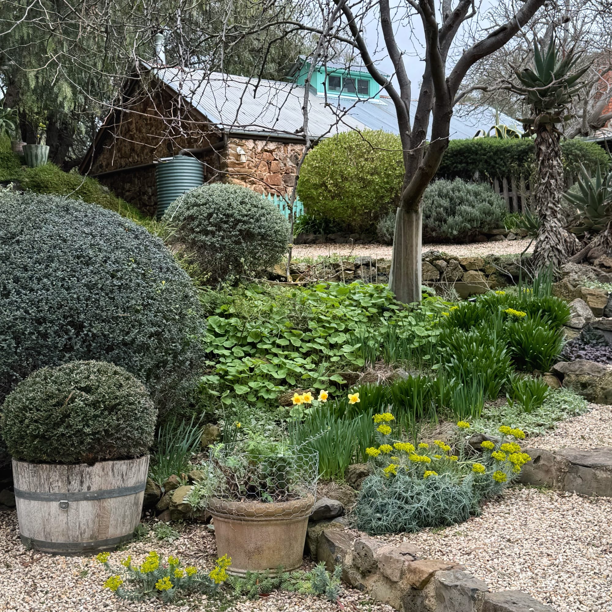 At their property, tucked along the hip of Concongella Creek, I laid my eyes on a garden that meandered along hidden paths of intensely planted beds. Weeds and winter lawns were in perfect harmony with an old-world garden bursting with the signs of spring and the scratchings of new projects, in an optimistic state of flux.