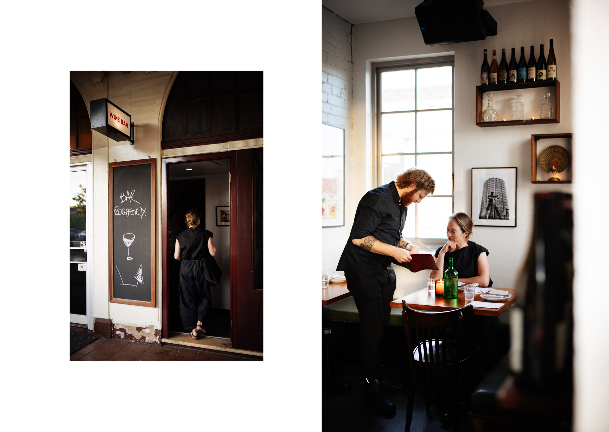 There was an alternative Canberra experience going on – a parallel universe in plain sight – if only I could get off the school bus. On the first night of the school excursion, I had my chance. During dinner at the hostel, when the children started lining up at the bain-marie to pile nuggets on their plates, I snuck out on foot to find something more exciting to eat. After only a few minutes I walked past a simple blackboard with "Bar Rochford" chalked on it, along with a picture of a glass of wine and an arrow pointing up. Next to it was a flight of stairs. So up I went.