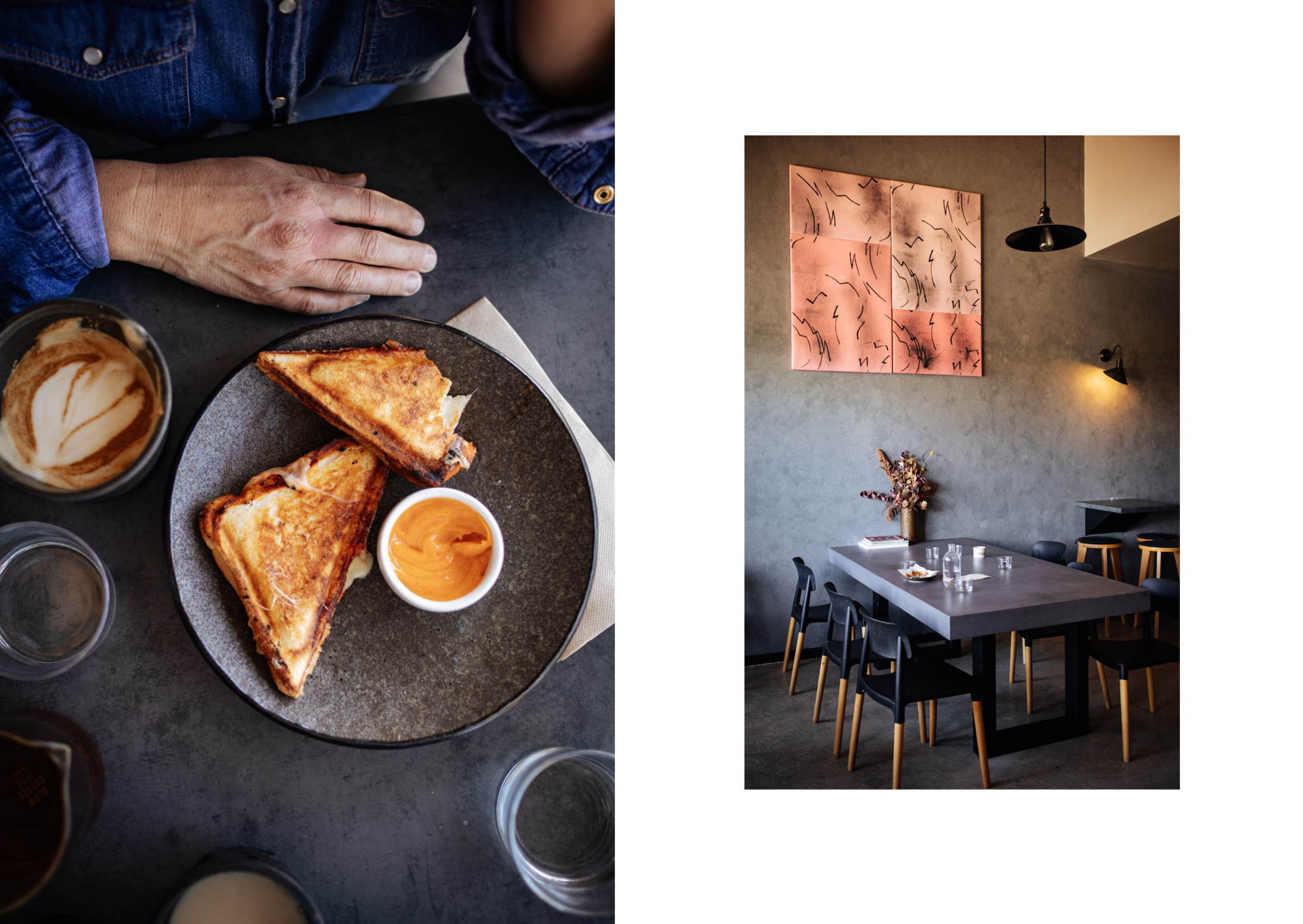 If I'd headed to the northern side of Lake Burley Griffin instead of the southern side to Recess, I could have pulled up at Intra, a concrete minimalist cafe with great coffee, properly brewed tea (not just a teabag dunked in hot water), an excellent jaffle menu, and art by local painter Luke Chiswell.