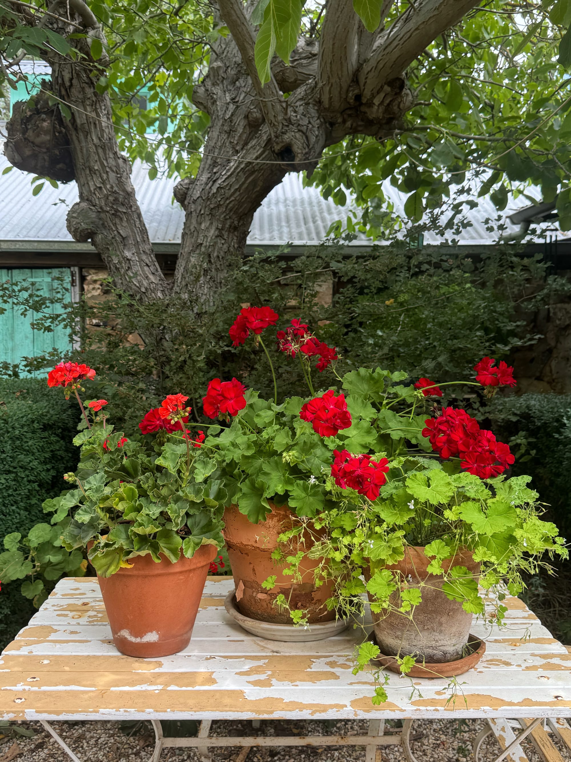 Our good friend Lesley, who lives on the edge of town in a classic Victorian house, has created supreme beauty in her garden by recreating a slice of 19th century England. I have never seen another garden out our way where the most delicate and cherished cottage garden plants thrive. Lesley’s garden is almost collapsing under the roses, the exuberant lupins, the great towers of delphiniums and hollyhocks. Beneath it all, a menagerie of chickens runs riot. She has triumphantly created the kind of garden we never could, and it’s magnificent.