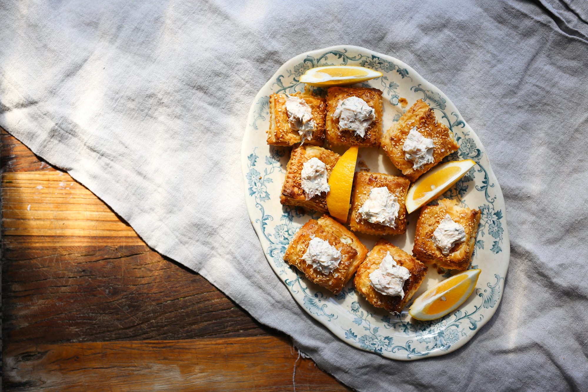 These puff pastry bites with salmon rillettes are so delicious and always such a crowd pleaser. They’re good with a glass of chilled sparkling or chardonnay at a drinks party, and especially good to have ready made, stashed in the freezer for exactly these moments. Sophie x