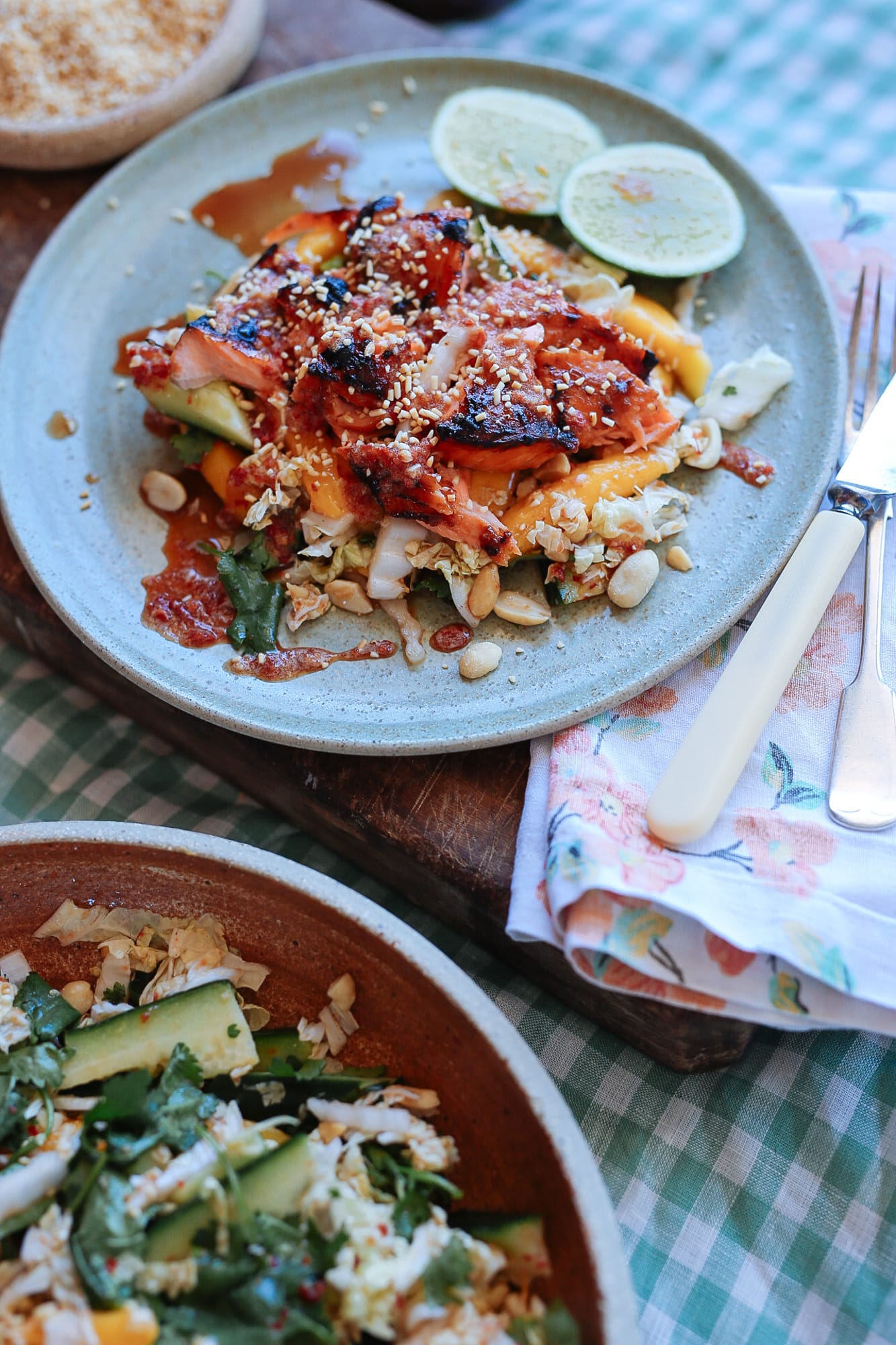 I'd say barbecued marinated trout with cabbage and peanut nuoc cham salad (below). Especially at this time of year. This is a fairly simple recipe (see below) of ocean trout marinated in oyster sauce, soy, ginger, garlic and sugar, and dressed with nuoc cham, a Vietnamese dressing made of lime juice, fish sauce, palm sugar and chilli, ideally brought together in a mortar and pestle. I serve this over sliced cabbage with any and all raw vegetables finely sliced and dressed in the nuoc cham, then finished with toasted peanuts and crispy shallots.